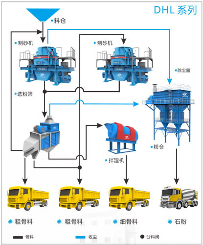 DHL系列樓式制砂生產(chǎn)線,采用全鋼樓式結(jié)構(gòu),占地面積小,具有工藝流程簡(jiǎn)單耐用,安裝便捷,生產(chǎn)效率高等優(yōu)勢(shì)。生產(chǎn)的精品機(jī)制砂粒型圓整、顆粒級(jí)配連續(xù)、細(xì)度模數(shù)可調(diào)。 工藝優(yōu)勢(shì):該生產(chǎn)線采用機(jī)械除塵、外封樓站的形式,綜合應(yīng)用多種降噪減振措施,多點(diǎn)集中除塵,噪音小,粉塵少。