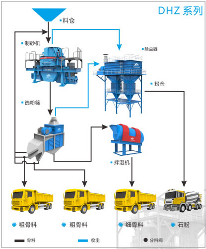 DHZ系列平面站式制砂生產(chǎn)線,結(jié)構(gòu)簡(jiǎn)單,可靠耐用,生產(chǎn)效率高。生產(chǎn)的精品機(jī)制砂粒型圓整、顆粒級(jí)配連續(xù)、細(xì)度模數(shù)可調(diào),該生產(chǎn)線采用多點(diǎn)集中除塵,有效控制粉塵排放。