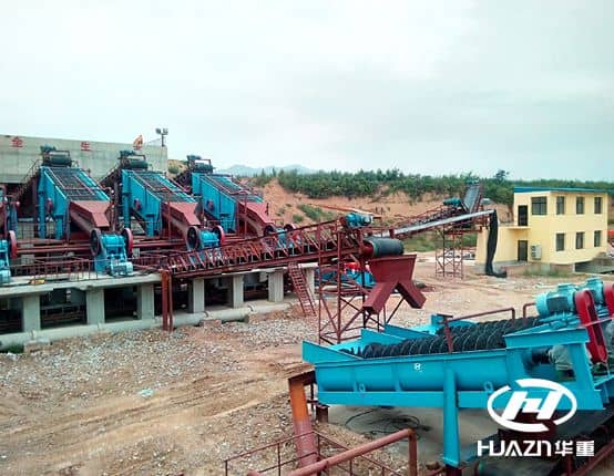 由于該項(xiàng)目料源為開挖天然礫石料,且泥土含量較高,因此在系統(tǒng)設(shè)計(jì)時(shí),著重考慮了系統(tǒng)的篩分、水洗、脫泥工藝,利用高性能的重型篩對原料預(yù)先進(jìn)行篩分,并強(qiáng)制水洗脫泥,然后再進(jìn)入后續(xù)的顎式破碎機(jī)和HPY系列多缸圓錐破碎機(jī),為了確保生產(chǎn)出潔凈的砂石骨料,系統(tǒng)設(shè)計(jì)了二次篩分和再次強(qiáng)制水洗脫泥,最后對成品砂石骨料又采用專用的洗石、洗砂、脫水設(shè)備再次進(jìn)行水洗和脫水,保證了成品砂石料的品質(zhì)和潔凈。