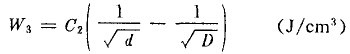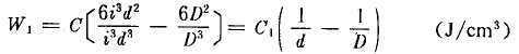 在通常情況下,D≥d,即i≥1,則粉碎單位體積物料需要的能量W可寫成