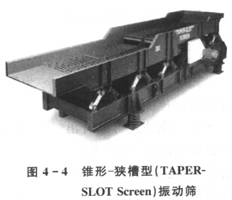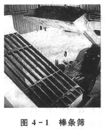 棒條篩(GrizZly screen)由一組具有一定斷面形狀的棒條所組成。如圖4—1所示,這些捧條平行安放,棒條與棒條之間的間隙即篩孔尺寸。棒條篩安裝傾角應(yīng)大于廢物對(duì)篩面的摩擦角,一般為30°一35°,以保證廢物沿篩面下滑。棒條篩篩面的篩孔尺寸為要求篩下產(chǎn)品粒度的1.1—1.2倍,一般篩孔尺寸不小于50 mm。物料從棒條一端給入,并順棒條方向運(yùn)動(dòng),細(xì)粒穿過縫隙成為篩下物,粗粒從端面的末端排出。