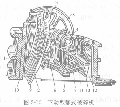 顎式破碎機(jī)的結(jié)構(gòu)如圖2-10所示。