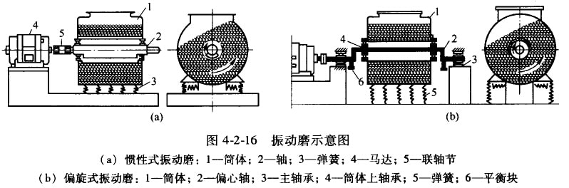 振動磨有慣性式和偏旋式2種。