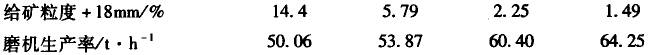我國某些廠礦生產(chǎn)實踐多次指出,適當(dāng)?shù)乜s小碎礦最終產(chǎn)品粒度是提高磨礦機生產(chǎn)率的一種有效措施。例如我國某選礦廠的 3200mm×3100mm格子型球磨機的給礦粒度與磨機處理能力的關(guān)系為: