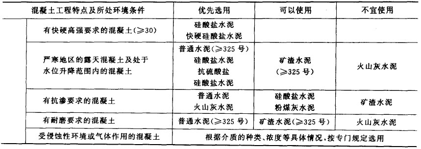 1. 水泥品種選用