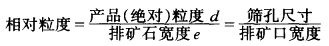 該曲線是由大量生產(chǎn)數(shù)據(jù)的平均統(tǒng)計(jì)得來的。生產(chǎn)實(shí)踐證明,用同一類型碎礦機(jī)破碎礦石,產(chǎn)品的粒度特性曲線形狀取決于被破碎物料的性質(zhì),主要的是它的硬度。因此在沒有實(shí)際資料的情況下,可以運(yùn)用這三種典型粒度特性曲線。為了運(yùn)用方便,橫坐標(biāo)不是直接用粒度的絕對(duì)值表示,而是用相對(duì)粒度表示。它們之間的關(guān)系如下: