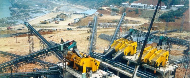 (1)濕式篩分:對含泥量高的物料,采用濕式篩分,有效地除去泥質(zhì)和細粒物料,防止泥質(zhì)和細粒物料粘結(jié)成團和堵塞篩孔,以提高篩子的工作指標。濕式篩分的耗水量一般為每立方米物料耗水1.5~3噸。對于含泥質(zhì)特別多的物料,也可以考慮在篩分前進行預先洗礦,將泥質(zhì)排除。