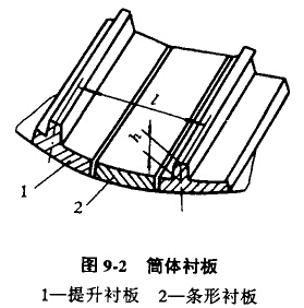 給料端戶空鈾頸內(nèi)有襯套,它的一端有提水用筋,提水用筋與圓周成45°角,其傾斜方向依筒體的旋轉(zhuǎn)方向而定。