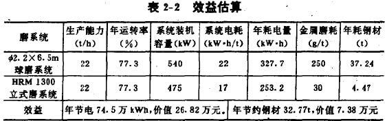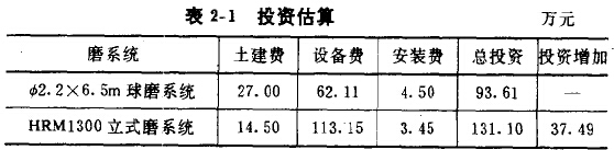 由表2-2可看出,立式磨投產(chǎn)后約一年的時(shí)間即可收回比球磨高出的投資。