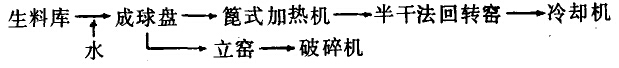 3. 半干法:是介于濕法和干法兩者之間的生產(chǎn)方法(也有劃在干法之內(nèi)的),將干法制得的生料粉調(diào)配均勻加適量的水(一般加水12-14%),制成料球在入窖煅燒。一般回轉(zhuǎn)窖生產(chǎn)可采用濕法、干法和半干法,立窖生產(chǎn)只采用半干法,其生產(chǎn)工藝過(guò)程和使用的機(jī)械設(shè)備與半干法相似,二者的區(qū)別僅在于: