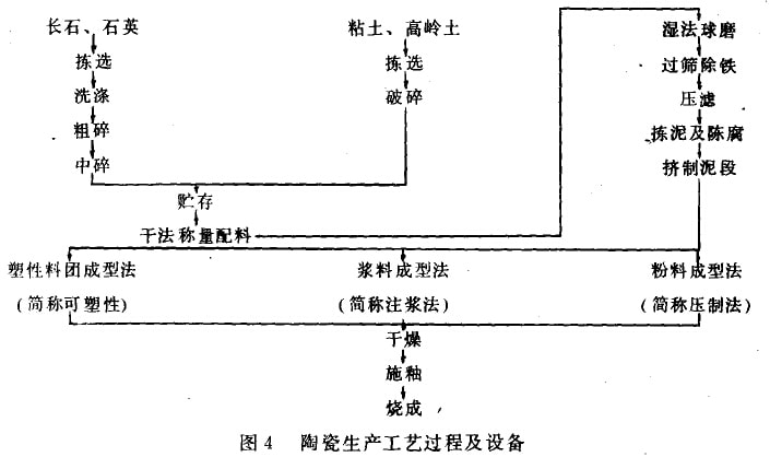 陶瓷生產(chǎn)工藝過(guò)程及機(jī)械設(shè)備見圖4所示。