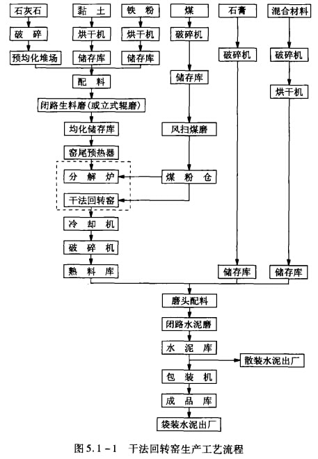 干法回轉窯生產的工藝流程如圖5.1-1所示。