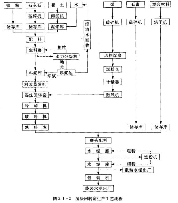 濕法回轉窯生產的工藝流程如圖5.1-2所示。
