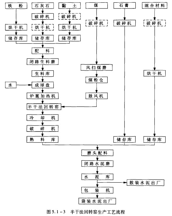 半干法回轉窯生產的工藝流程如圖5.1-3所示。