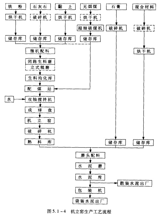 機立窯生產的工藝流程如圖5.1-4所示。