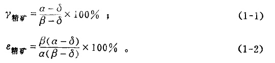 通常用希臘字母α、β、δ三個(gè)字母分別表示原礦。、精礦、尾礦的品位。