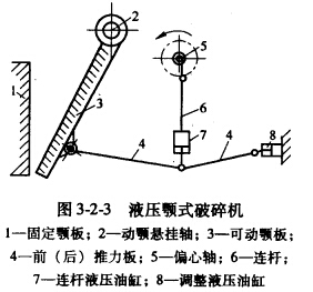 (3)液壓調(diào)整。近年來還有在此位置安裝液壓推動缸來調(diào)整排礦口的,見圖3-2-3液壓頰式破碎機中的調(diào)整液壓油缸8。