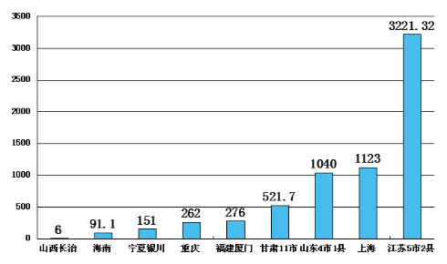 我國2014年部分省市拆遷量(單位:萬平米)