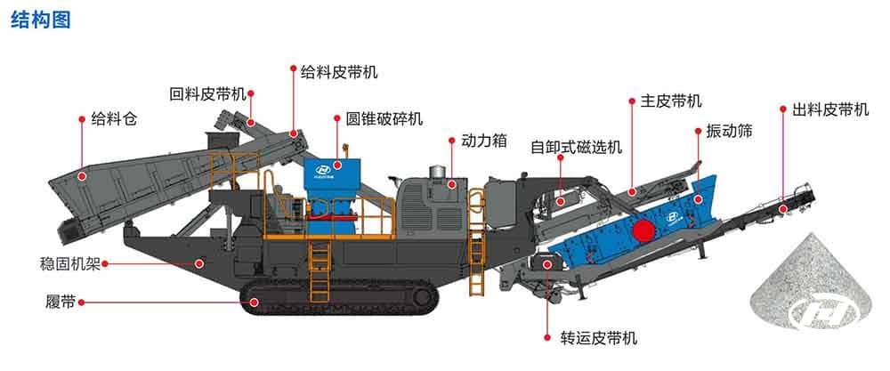 注::①關(guān)于破碎設(shè)備處理能力與石料硬度、給料粒度、出料粒度相關(guān)。②標(biāo)配:主皮帶和尾料皮帶配折疊技術(shù)、PLC+顯示器、除鐵器、無線遙控控制。③選配:全液壓驅(qū)動、返料系統(tǒng)、除塵器噴淋系統(tǒng)、柴油灌注泵、有線遙控、集中潤滑系統(tǒng)。④鑒于我公司技術(shù)不斷更新,及時參數(shù)變動恕不另行通知,具體參數(shù)以實物為準(zhǔn)。