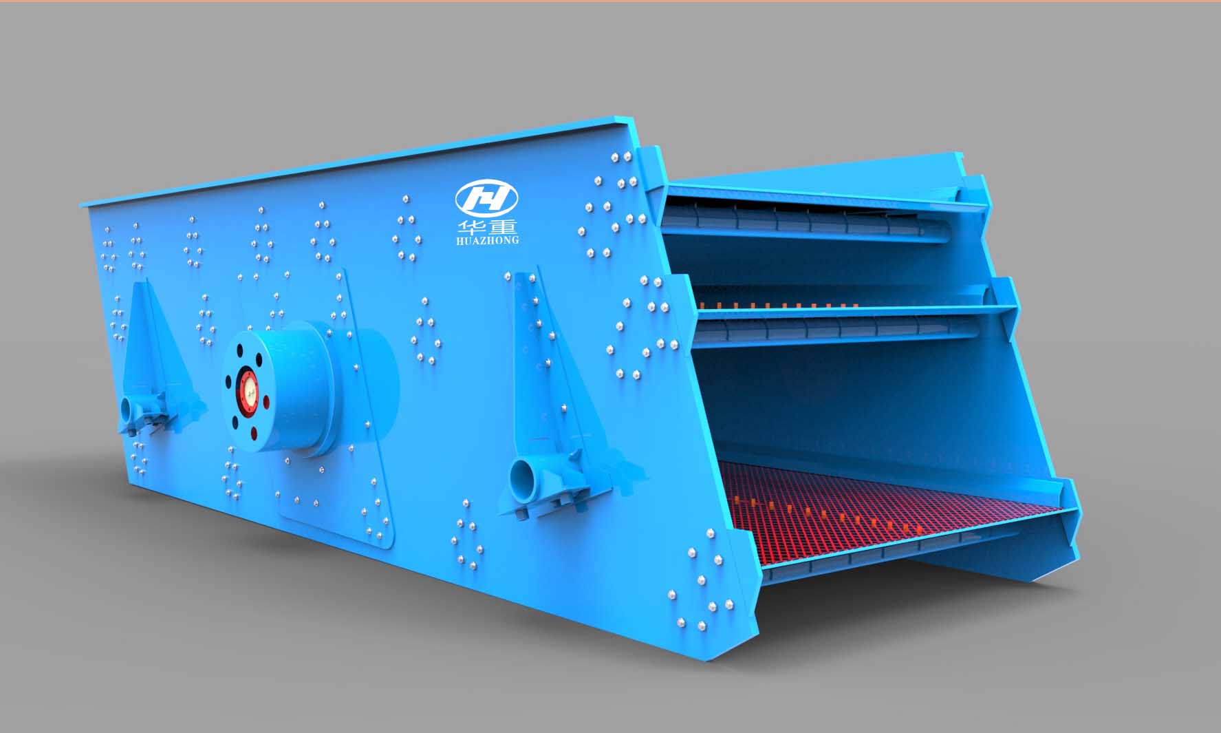 采用小振幅、高頻率、大傾角結(jié)構(gòu),使該機篩分效率高、處理量更大。側(cè)板折邊且與橫梁及支撐座均采用高強度螺栓連接,全篩無焊接疲勞應力。